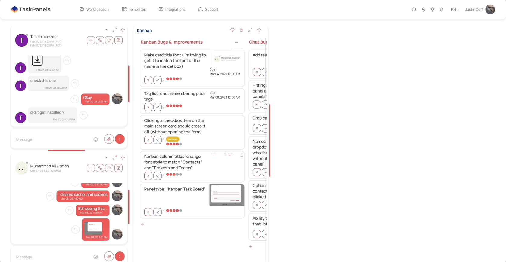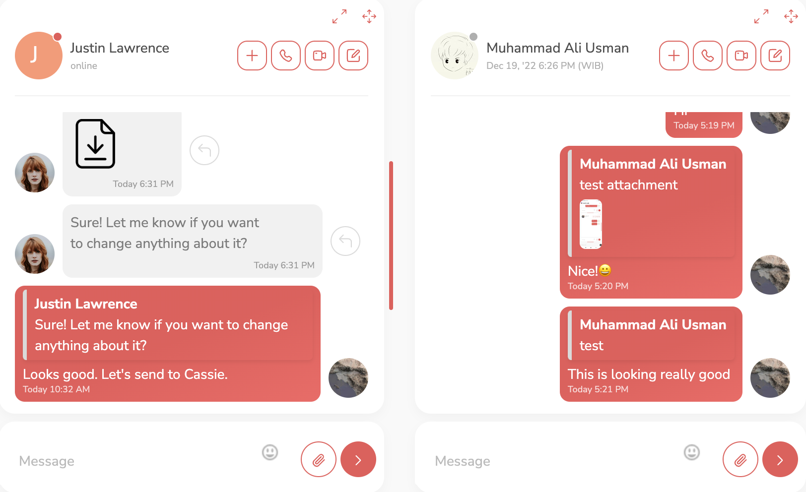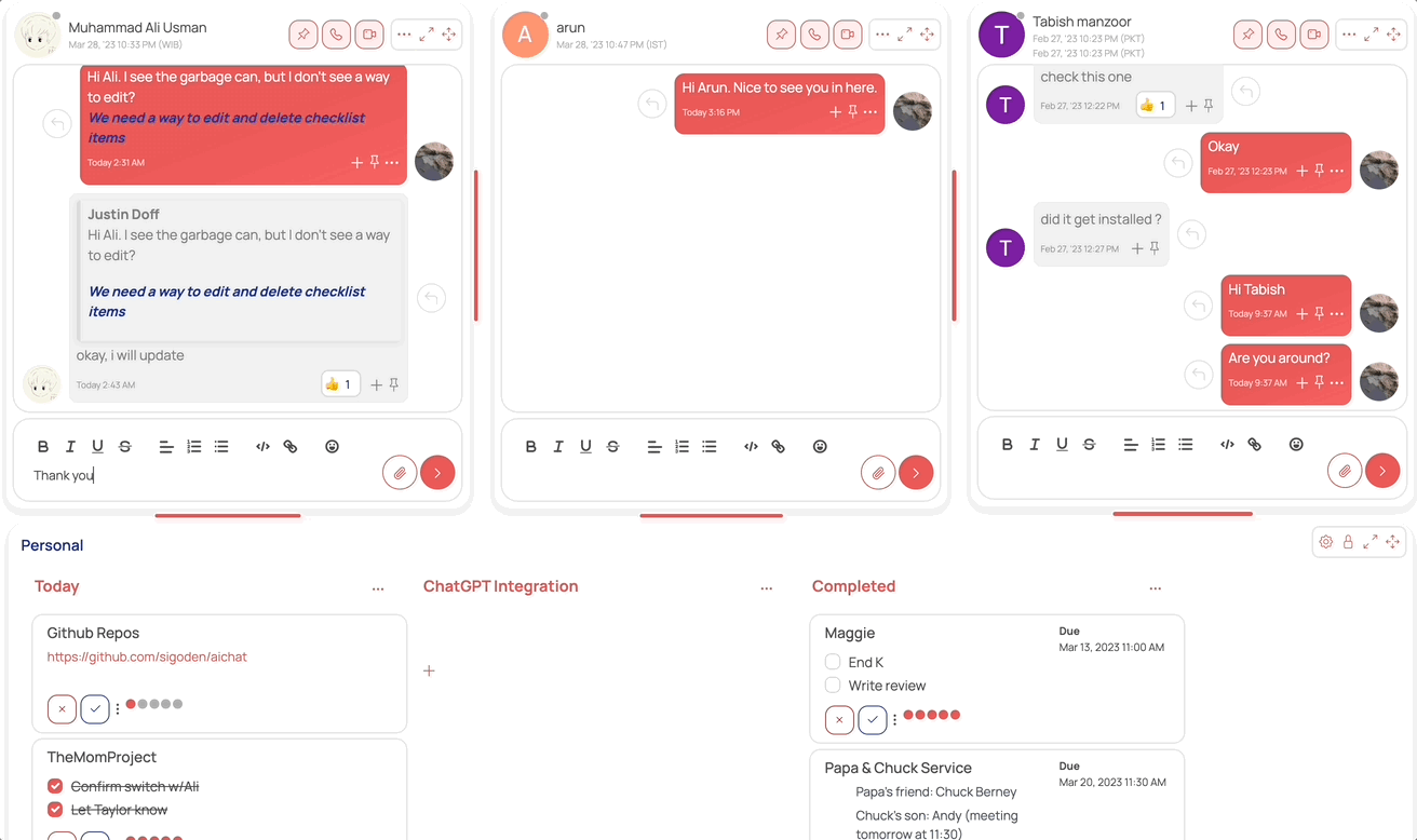 1:1, team, or project threads with the ability to add tags, quotes, reactions/emojis, rich formatting, code, and drag-and-drop image and file uploads