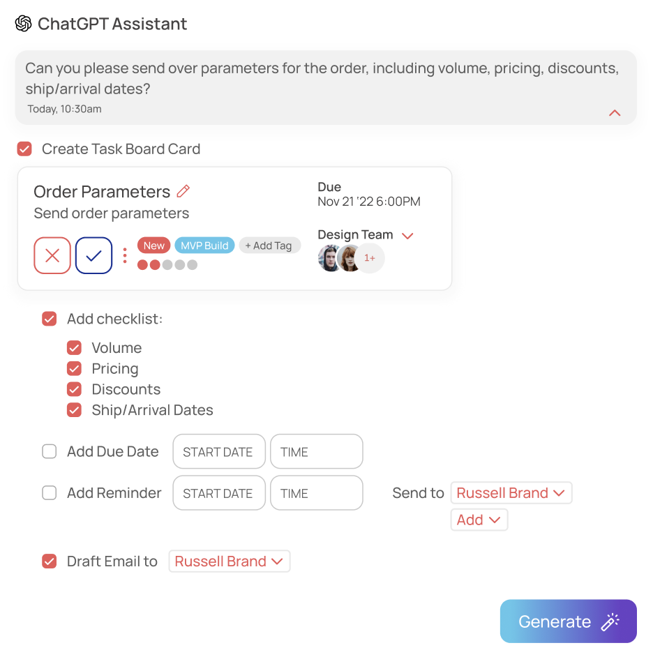 Automate tasks, checklists, email drafts, deadlines, scheduling, collaboration, and reminders in one click